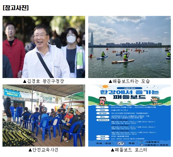 광진구(구청장 김경호)가 17일부터 23일까지 뚝섬한강공원 서울윈드서핑장에서 패들보드교실 참여자를 모집한다고 밝혔다.